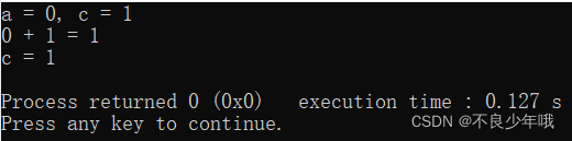 ELSE: printf("%d + %d = %d\n", a, c, a + c);