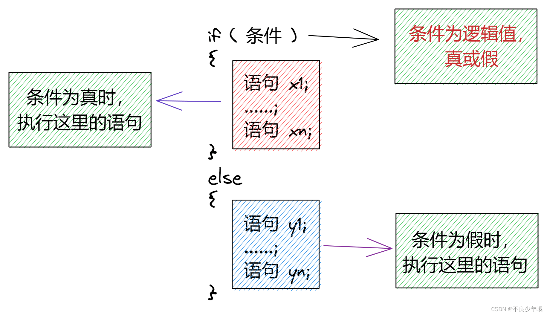 - if 和 else 都可以不使用 { } ,此时每个分支只对应一条语句