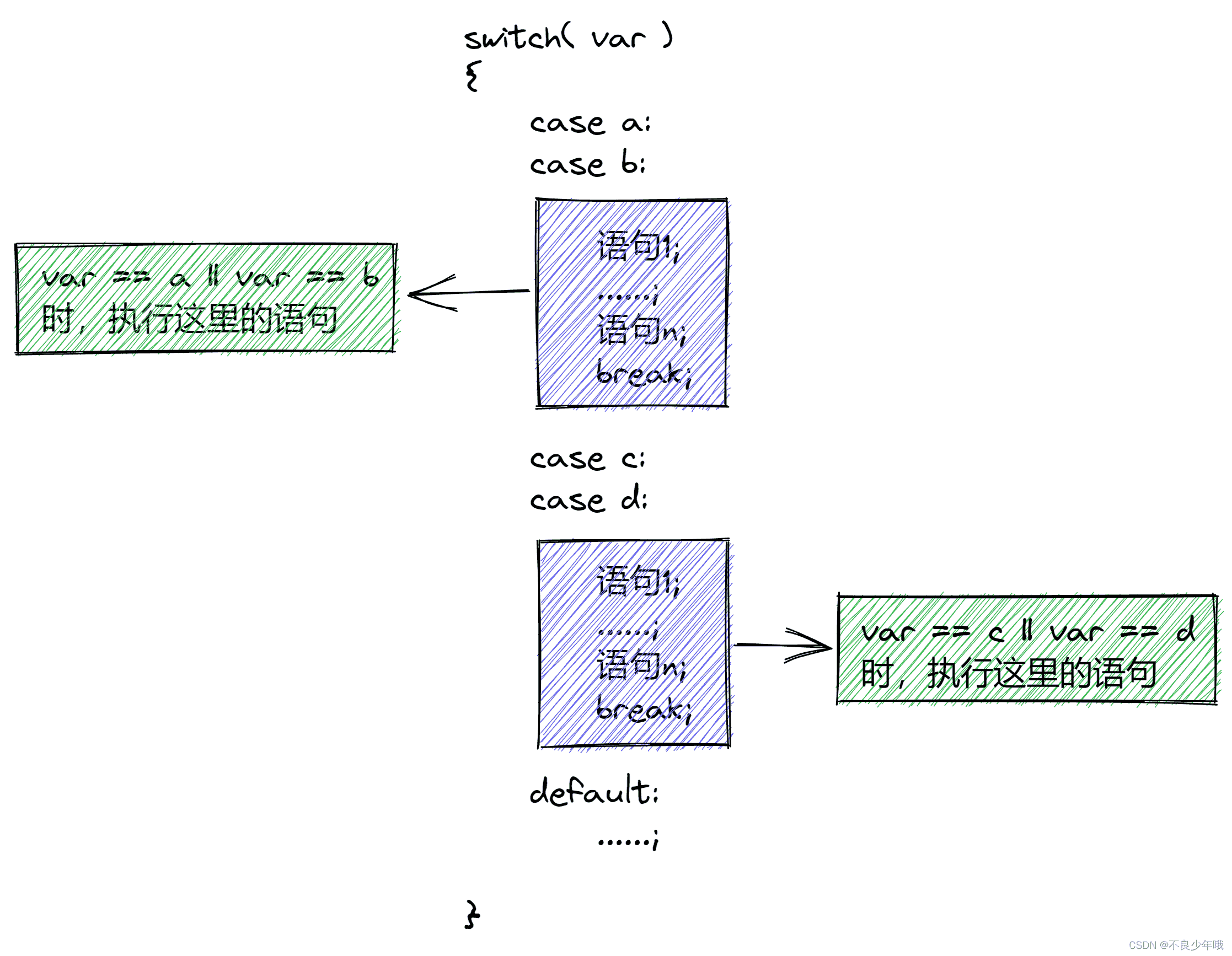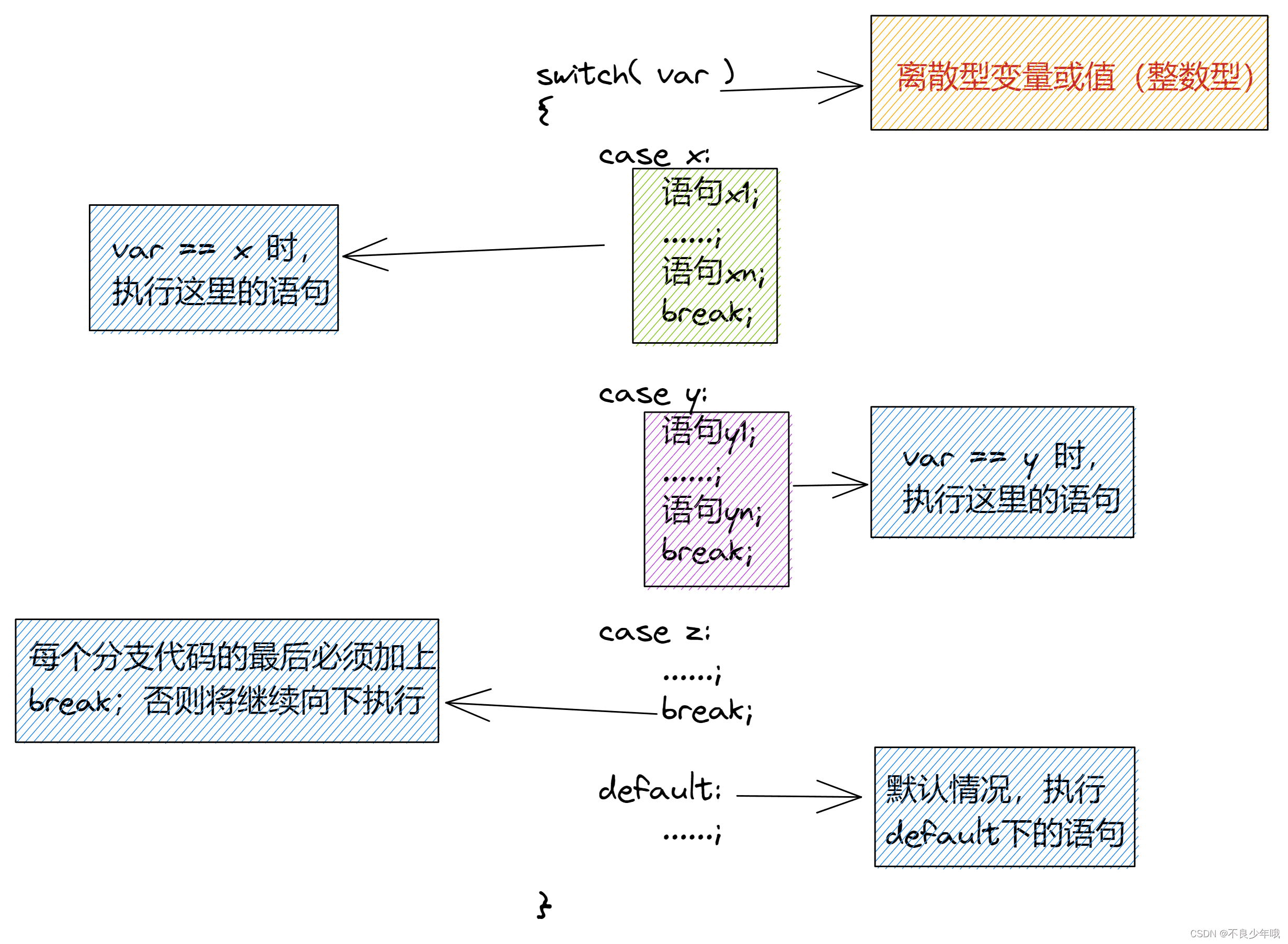 - default 分支不是必须的(类似于 else 分支不是必须的)
