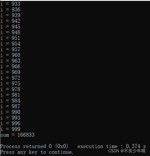 - continue 结束循环体的单次执行,并不会结束整个循环
