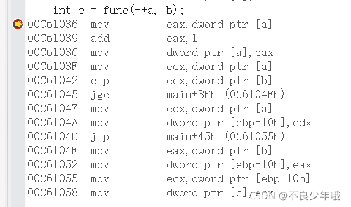 这个时候在进行反汇编,如下图所示,可以看到调用函数的汇编代码没有了,表示内联成功了。