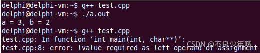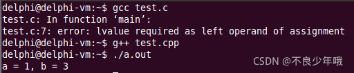 }下面为输出结果,可以看到上面的程序在C语言的编译条件下编译不通过,而在C++的编译条件下编译通过,这说明在(a < b ? a : b)代码中,因为a < b ,所以输出a的值,然后把3赋值给a。