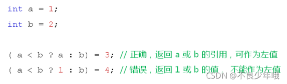 注意:三目运算符可能返回的值中如果有一个是常量值,则不能作为左值使用。