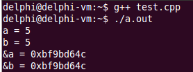 printf("a = %d, b = %d\n", a, b); //操作b就是操作a