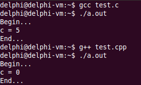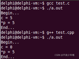 }下图为该程序分别在C语言和C++编译环境在的运行结果: