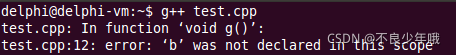 }在C++的编译环境下,就会报如下的错误。这是因为编译器会对const常量进行一个类型检查和作用域检查,所以b只在f()内部有效,在f()外部无效。