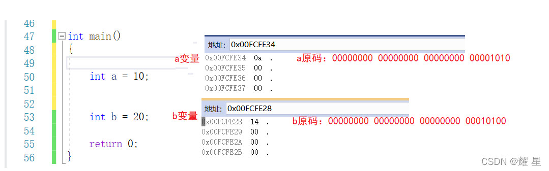 在计算机内存中,数据的存储方式都是以0和1的形式存储,也就是二进制的形式,数据是如何向内存写入的呢?整形数据以补码的形式存储,浮点型的存储规则较多,类似于科学计数法。