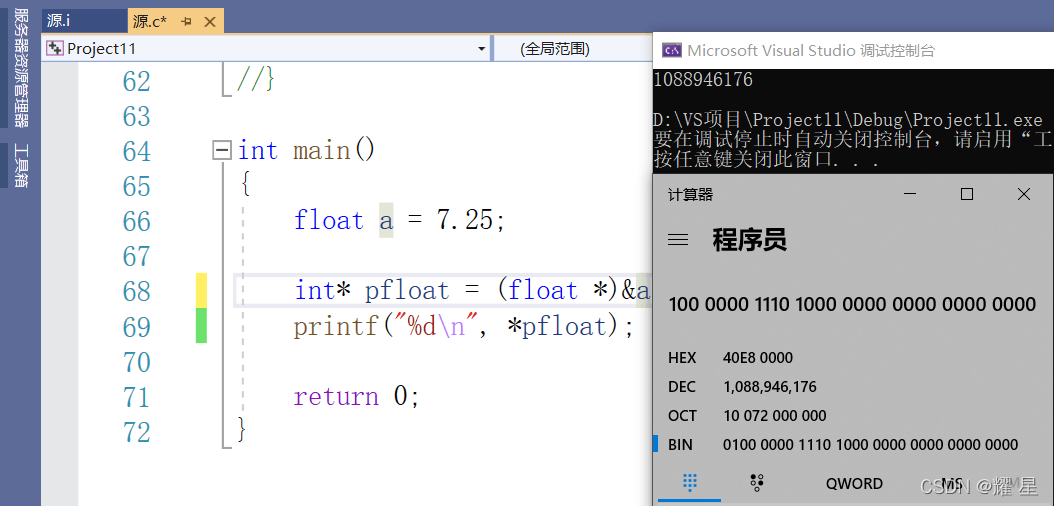 根据国际标准IEEE(电气和电子工程协会)754,任意一个二进制浮点数V可以表示成下面的形式: