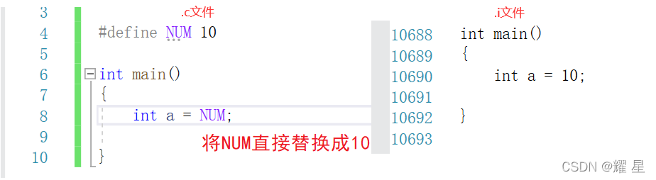 在预处理阶段,编译器会在程序中使用#define定义的标识符替换成stuff,可以通过预处理生成的.i文件查看效果。