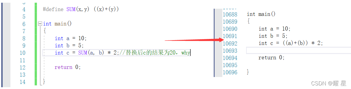 int c = SUM(a,b)*2;//替换后c的结果为20,why