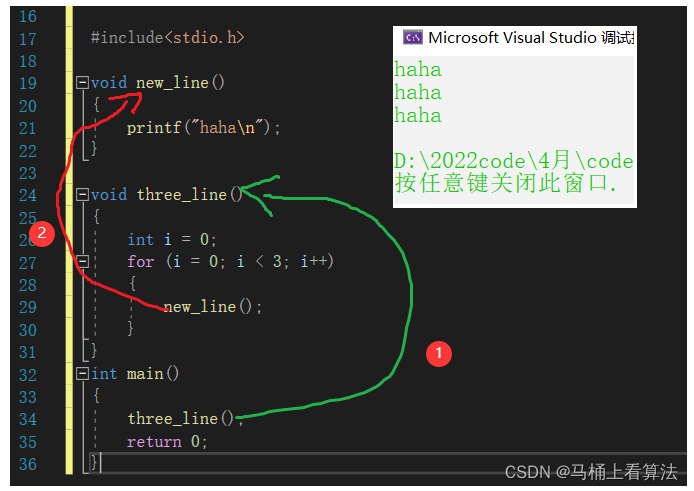根据这张图可以清楚的看到,three_line() 函数内部嵌套了一个 new_line() 函数。