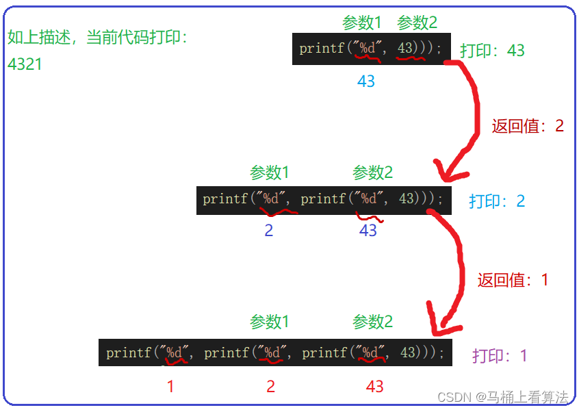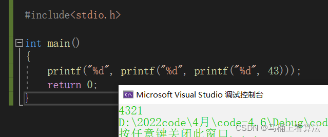 当得知了printf()函数的返回值是打印字符的个数后,可以做出一下分析。