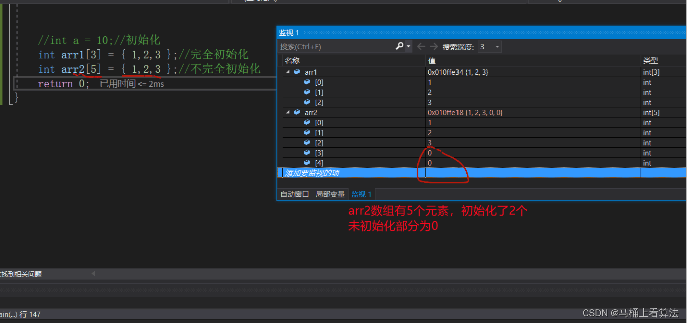 int arr[4] = 5;//把下标是4的元素给赋值为5