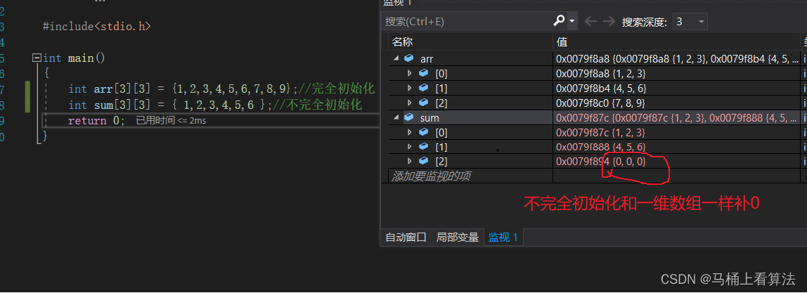 int sum[][3] = { 1, 2, 3, 4, 5, 6, 7, 8, 9 };