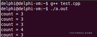 Test* pt = new Test(); 动态在堆空间生成了一个 test 对象,所以会触发构造函数的调用,所以 count 变成了 4,delete pt; 后 count 就变成 3 了。