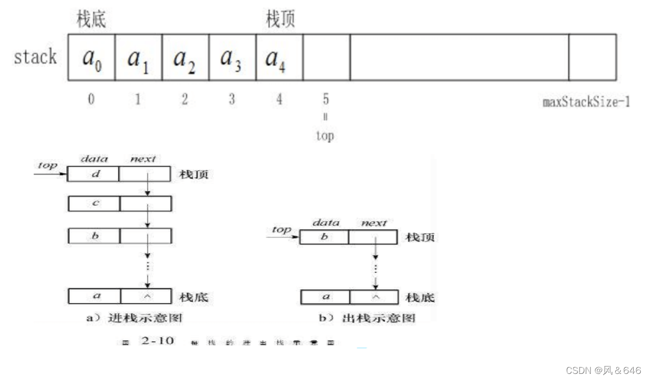 出栈:栈的删除操作叫做出栈。出数据也在栈顶。