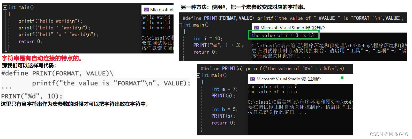 2.当预处理器搜索#define定义的符号的时候,字符串常量的内容并不被搜索。