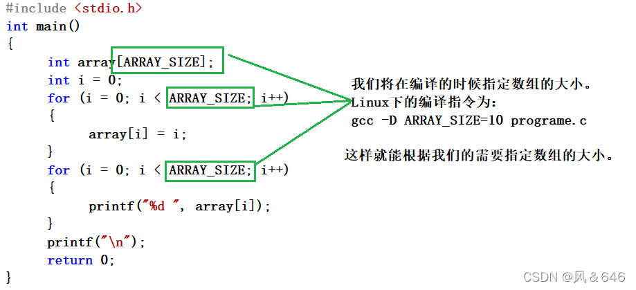 例如:当我们根据同一个源文件要编译出不同的一个程序的不同版本的时候,这个特性就比较有用。(若某个程序中声明了一个某长度的数组,若机器内存有限,我们需要一个很小的数组,若机器内存大一些,我们就需要一个大一点的数组)。