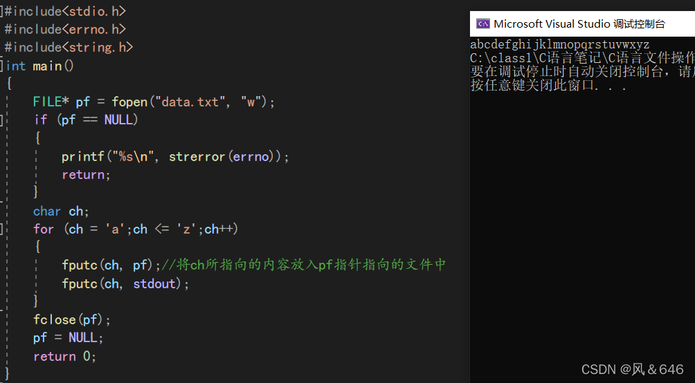 定义的pf是一个指向FILE类型数据的指针变量。可以使得pf指向某个文件的文件信息区(结构体变量)。通过该文件信息区中的信息就能够访问该文件。即:通过文件指针变量能够找到与它关联的文件。