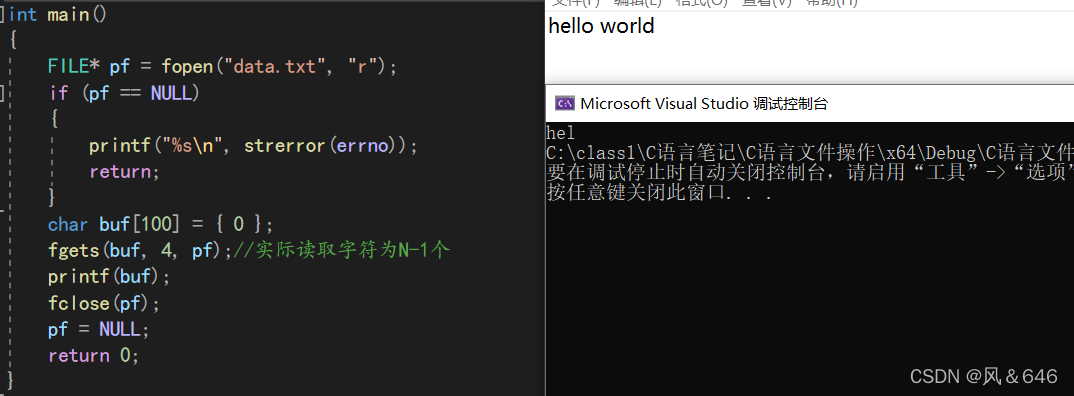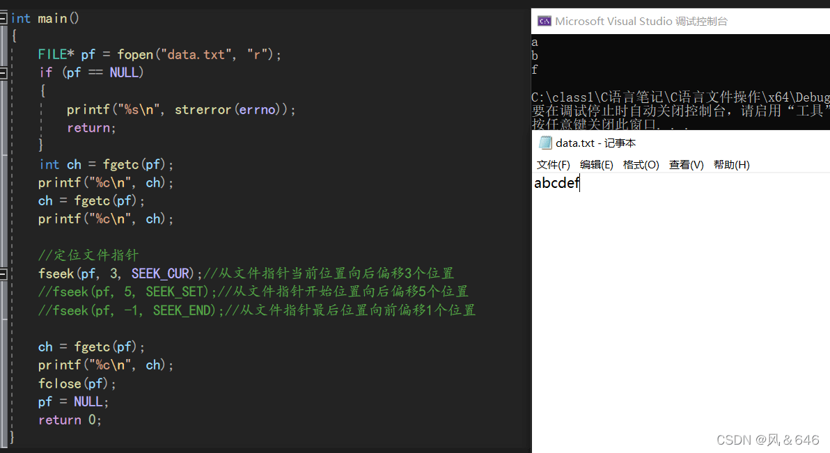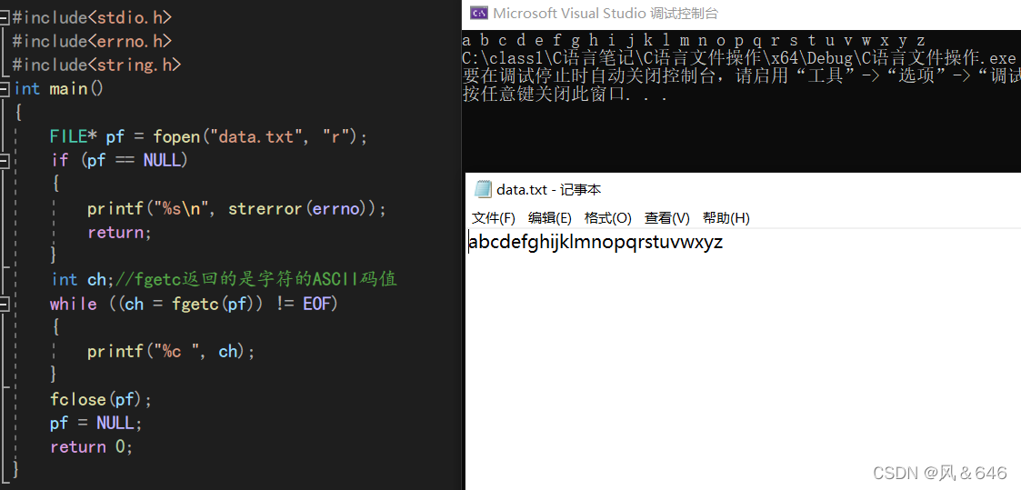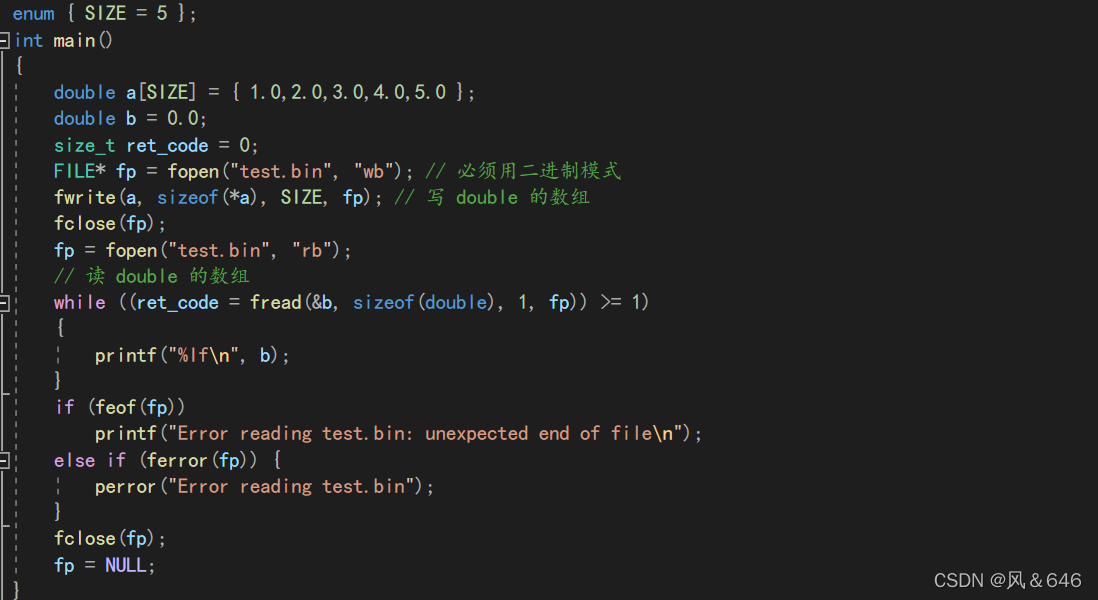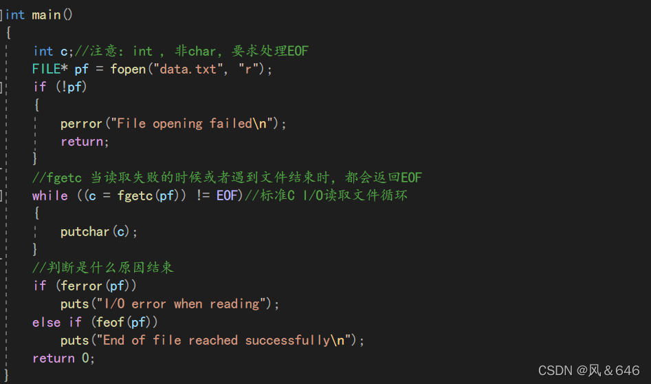 注意:在文件读取过程中,不能用feof函数的返回值直接用来判断文件是否结束。而是用于当文件读取结束的时候,判断是读取失败结束,还是遇到文件尾结束。