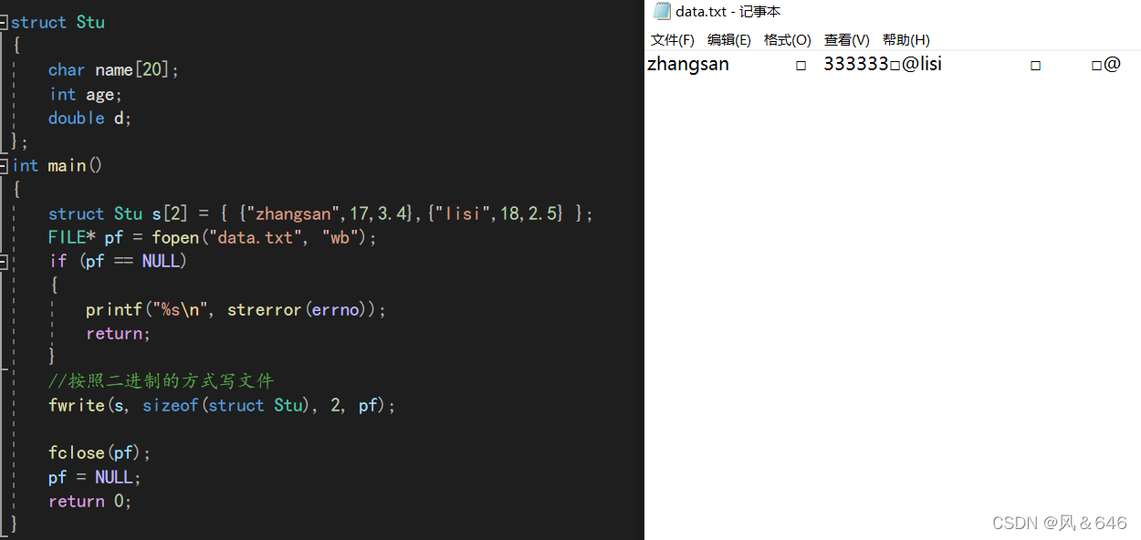 buffer - 数据的储存位置 size - 项目大小(以字节为单位) count - 要读取的最大项数 stream - 指向FILE结构的指针fwrite - 以二进制形式向流中写入数据