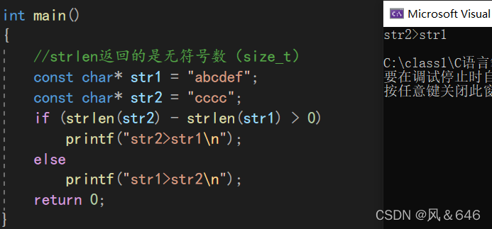 3.注意函数的返回值为size_t,是无符号的(易错)
