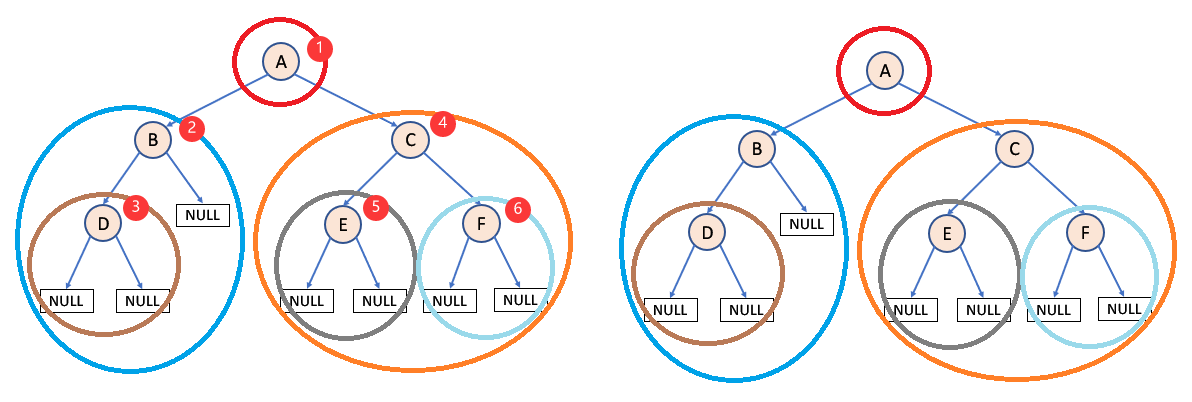 依次比较两颗二叉树中「当前树(1、2、3、4、5、6)的根节点」是否相等,这样每个节点都被比较了一次。