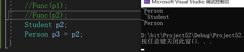 构成多态的结果是,Person*类型的p1和p2,接收两个不同类型的对象即Person类型和Student类型,在调用析构函数的时候可以分开调用(子类对象调用子类的析构函数,父类对象调用父类的析构函数。)