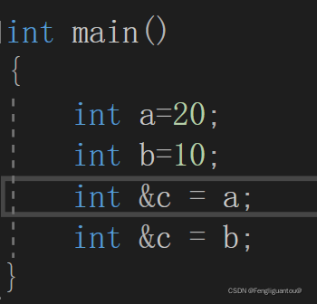 }这里变量a指向的空间是只能读取的,不能进行修改,而a的引用b,是可以对a指向的这块空间进行修改的,使得权限得到了放大,这种语法在C++中是错误的。