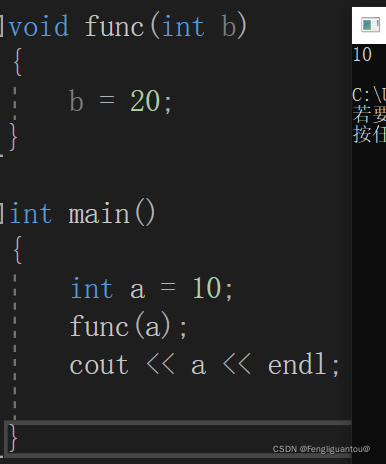 下图实参传递了a,形参b对其进行了接收并修改,但是实参a最终并没有受到影响,这又是为什么呢?