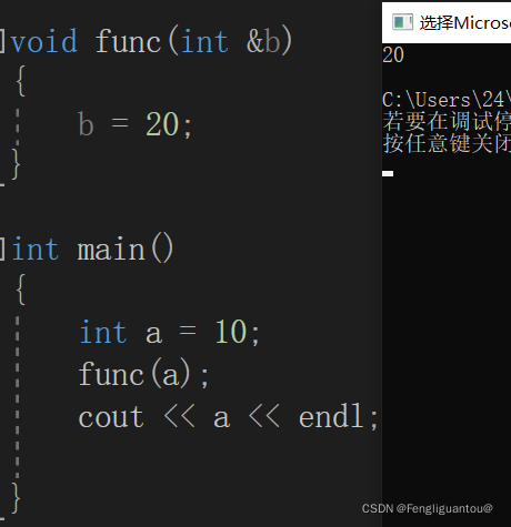 原来,引用传参的时候,形参不再是实参的拷贝,而是实参的一个引用,也就是说实参和形参指向的是同一块内存空间,形参的改变会影响实参。