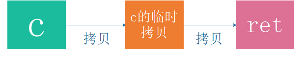 在返回c的时候,返回的不是c的本体,而是将c拷贝在一块临时空间里,所以返回的其实是这块临时空间。然后ret再次拷贝一个和这块临时空间一样数据的空间。