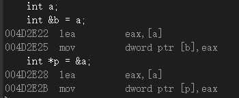 这里的lea是取地址的意思。 从汇编代码可以看出,在底成实现的时候,引用和指针的实现方式是一样的,所以说: 引用的底层是通过指针实现的