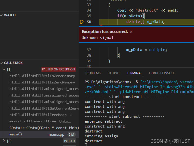 当类中有那种需要动态分配空间的成员的时候,要记得提醒自己重载拷贝构造函数和赋值运算符,这两者缺一不可。为了举个例子,我定义了下面这个CData类。