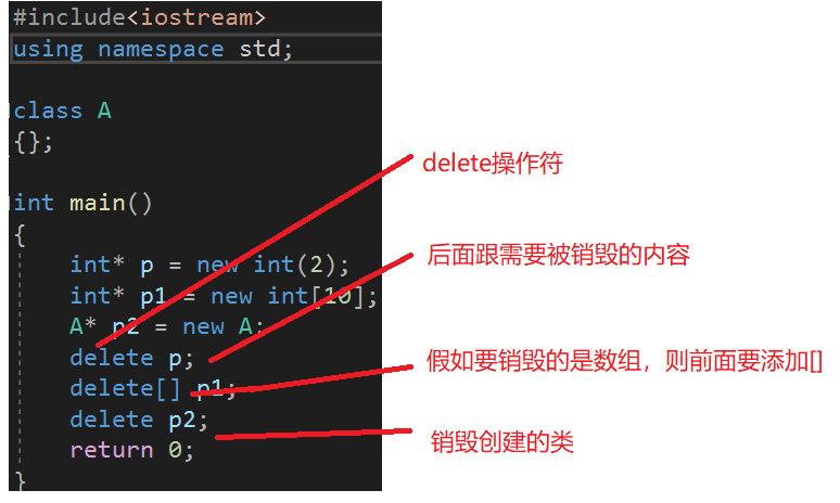 delete p; //销毁p