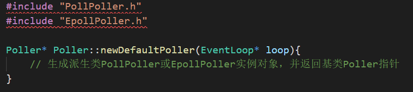 如果真的把newDefaultPoller写在Poller.cc里面,从语法上来说,没有错误。但是这个函数是要生成一个具体的I/O复用对象,并返回一个基类的指针