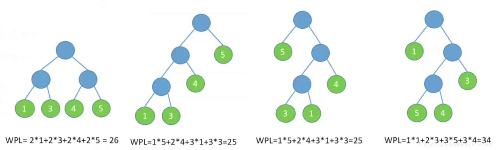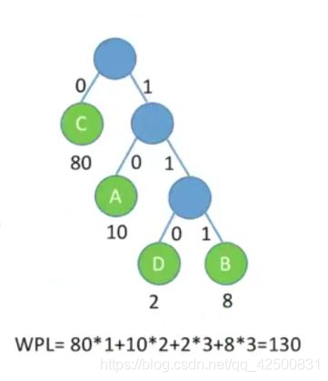 树的带权路径长度: 树上所有叶结点的带权路径长度之和