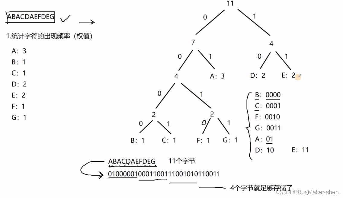 - 通过哈夫曼树,得到文件的哈夫曼编码