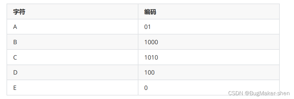 我们接收100的时候,需要考虑是立刻解码成D还是等待接收下一位,如果下一位是0就可以解码成B,这就说明表中的编码不具有立刻可解码性