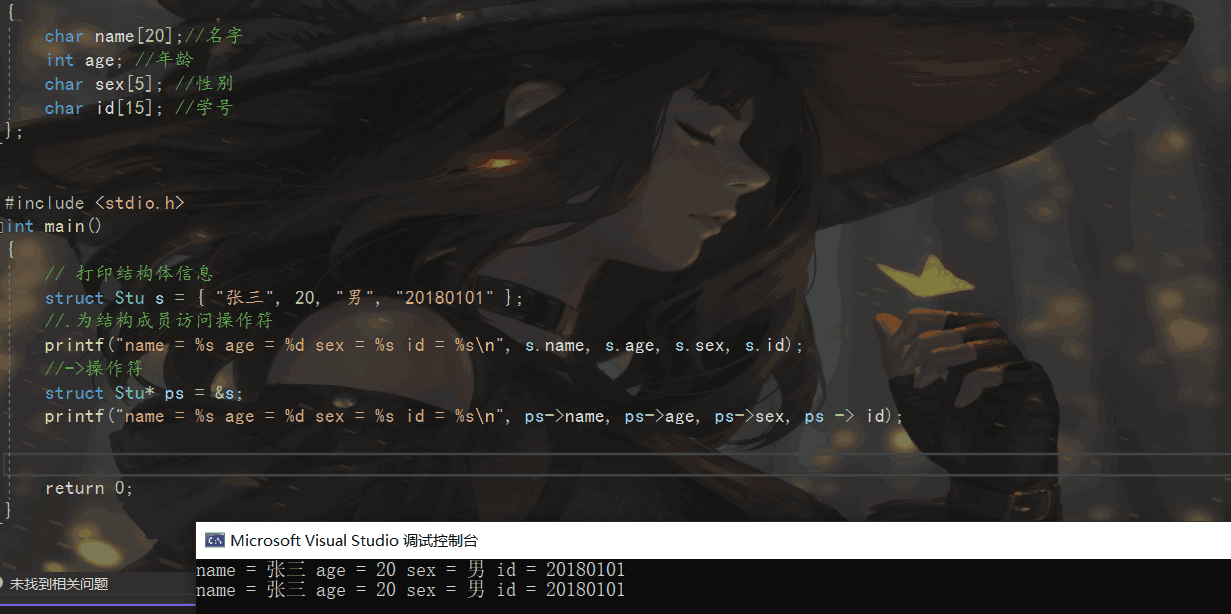 }首先定义一个结构体,然后对其结构体分配信息,可以使用.操作符和->操作符进行对其数据进行读取使用,那么在使用->的时候,需要对其结构体实例进行去地址,定义一个结构体指针,这样我们可以通过取地址的方法快速的获取信息!
