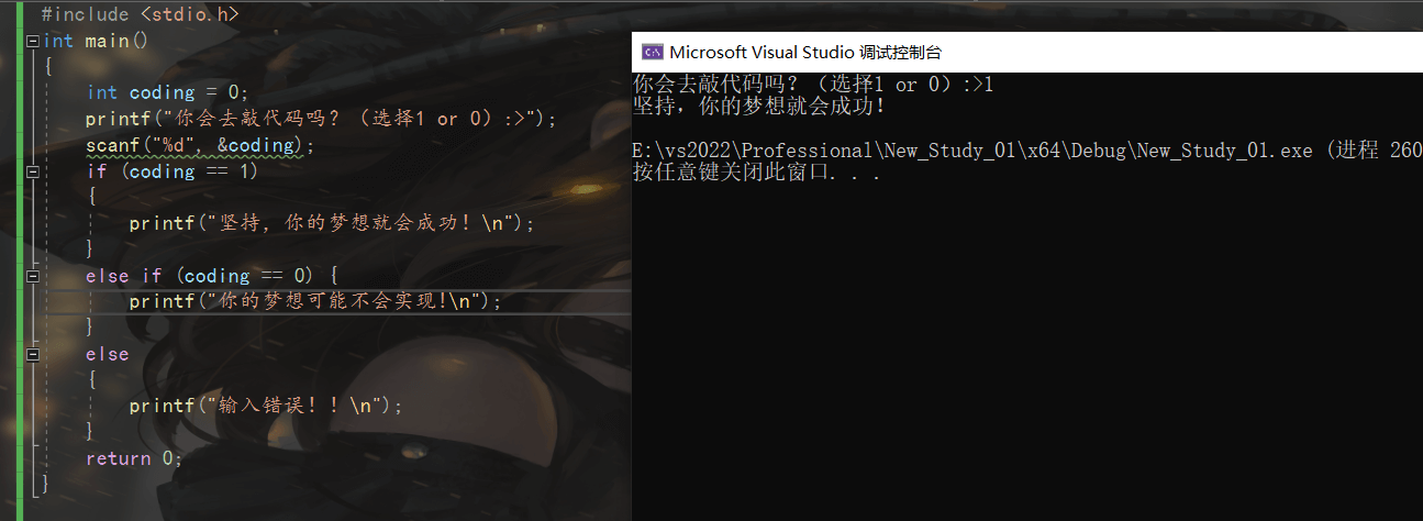 printf("你会去敲代码吗?(选择1 or 0):>");