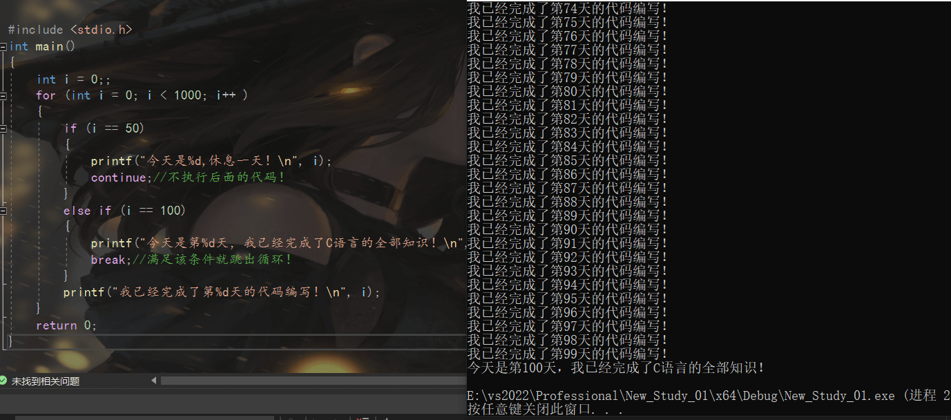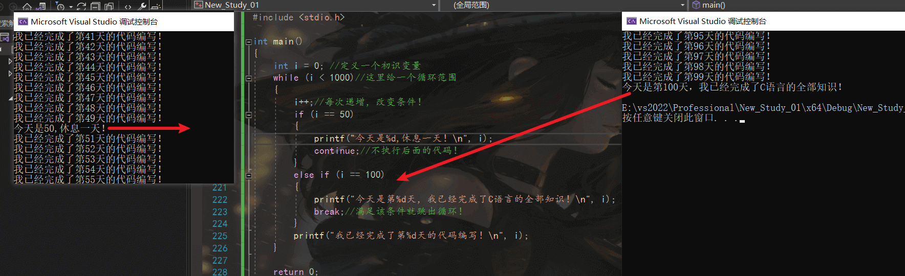 printf("今天是第%d天,我已经完成了C语言的全部知识!\n", i);