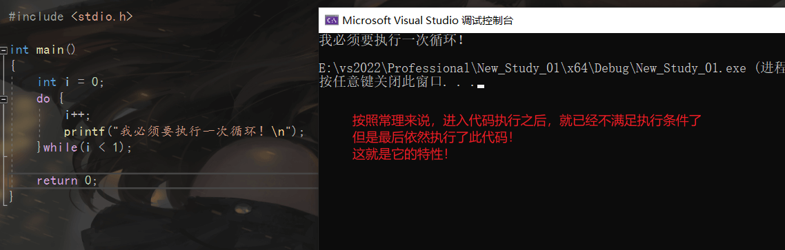 do while 语句创建一个循环,在expression为假或0之前重复执行循环体中的内容。do while语句是一种出口条件循环,即在执行完循环体后才根据测试条件决定是否再次执行循环。因此,该循环至少必须执行一次。