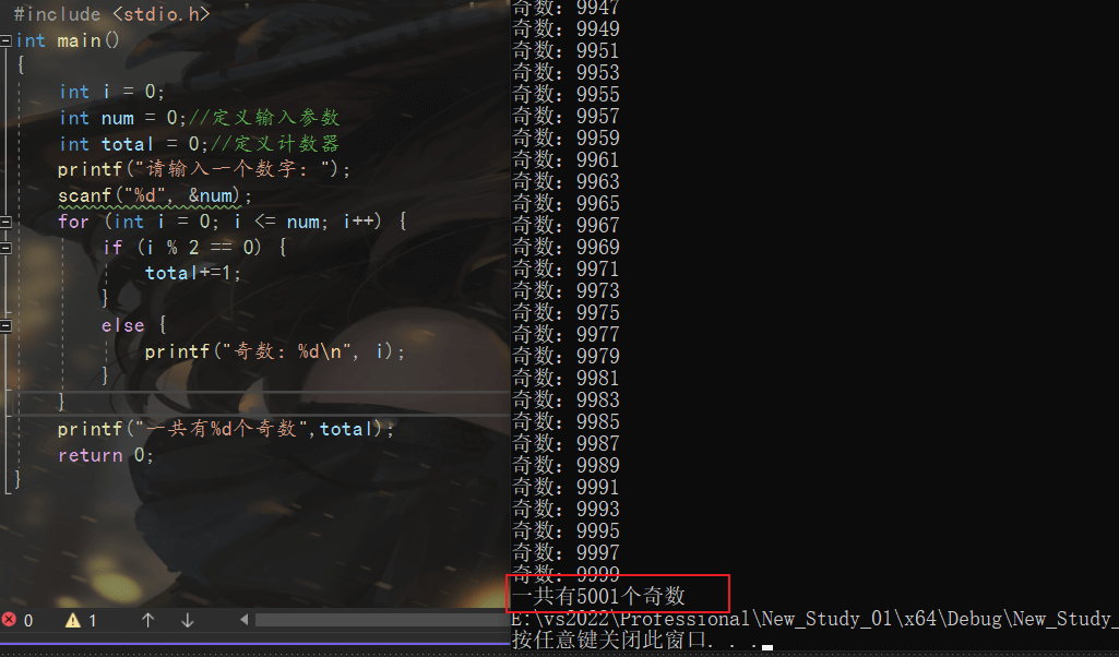 输入一个数字,返回0-该数字里面有多少个奇数!并打印出来!