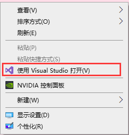 重启之后,我们在桌面鼠标右键点击,可以看到多了一个使用Visual Studio打开,我们点击就可以进入Visual Studio。