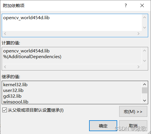 编辑,复制文件夹opencv\build\x64\vc15\lib中的opencv_world454d.lib文件,粘贴到我们的附加依赖项中