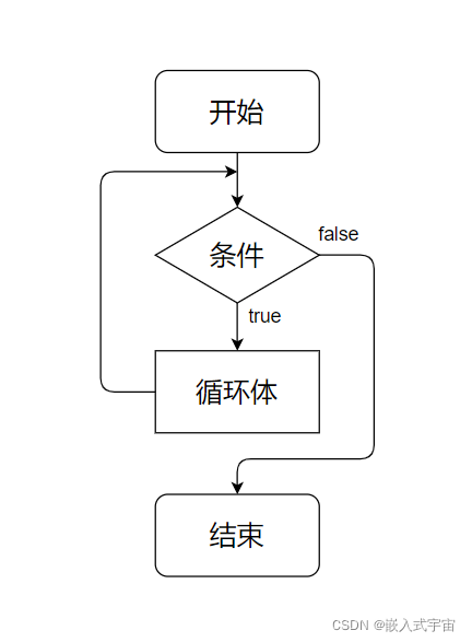 while() 循环语句的代码流程也很简单,就是先判断表达式的内容,当表达式为真的时候,就执行语句块的内容,语句块中的内容执行完了后又会判断表达式的值,直到表达式的值为假才会跳出语句块中。