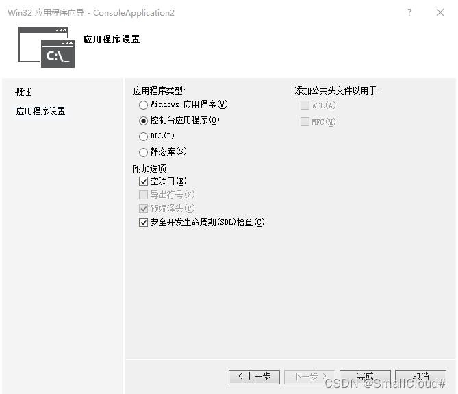 vs左上角:文件–新建–项目–Win32控制台应用程序–(注意勾选“附加选项:空项目“)