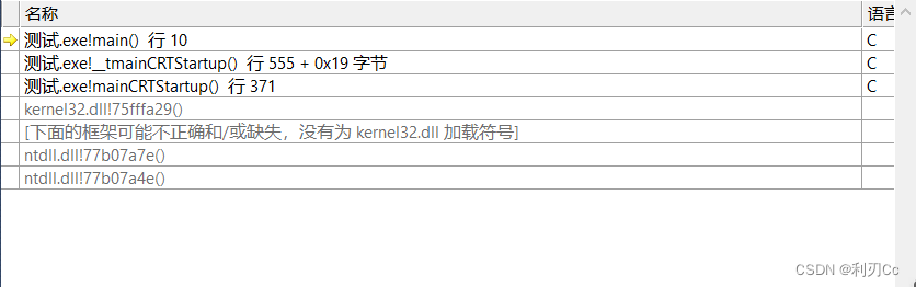 为了解决这个问题,我们打开编译器然后进行调试,打开调用堆栈功能