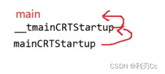 发现这里居然有两个函数,一个是 __tmainCRTStartup(),还有一个是mainCRTStartup()。通过头文件的查找,发现了以下的关系:
